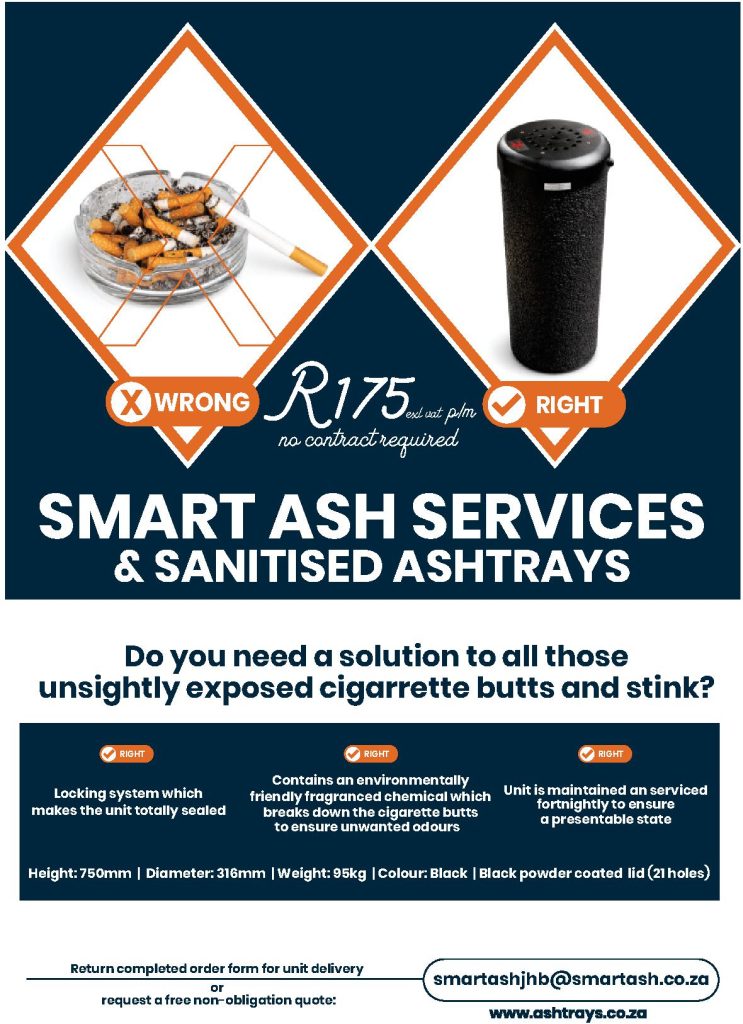 SmartAsh Serviced and Sanitised Ashtrays